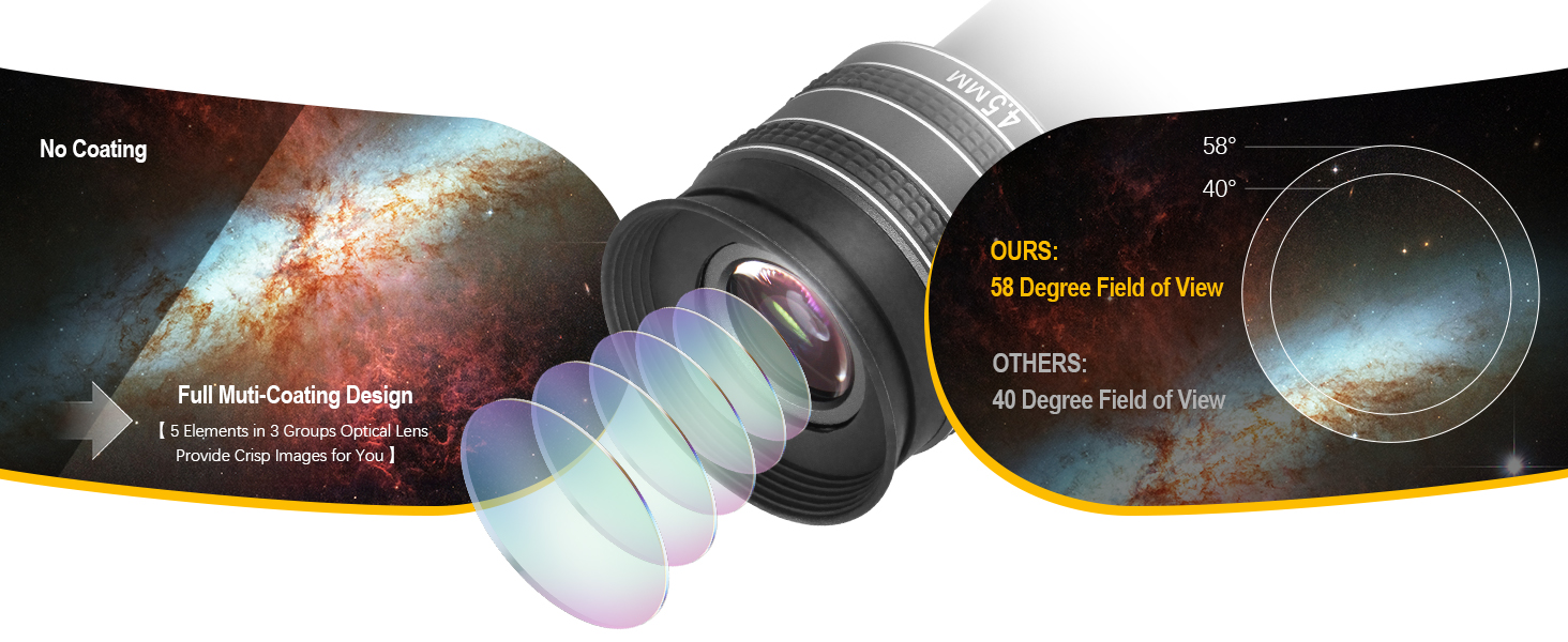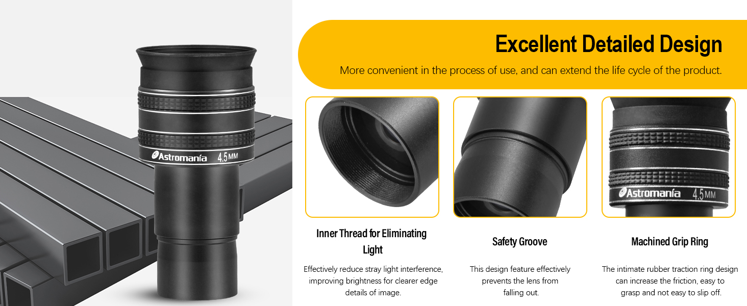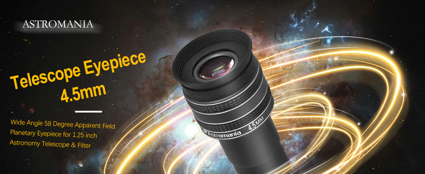 Astromania Telescope Eyepiece 4.5mm, Wide Angle 58 Degree Apparent Field Planetary Eyepiece for 1.25 inch Astronomy Telescope & Filter, Fully Multi-Coated Telescope Accessory for Planetary Observation