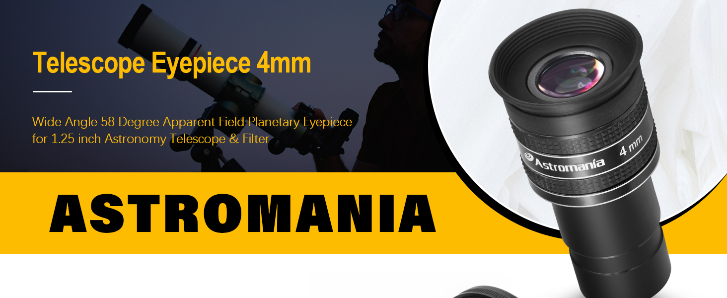 Astromania Telescope Eyepiece 4mm, Wide Angle 58 Degree Apparent Field Planetary Eyepiece for 1.25 inch Astronomy Telescope & Filter, Fully Multi-Coated Telescope Accessory for Planetary Observation