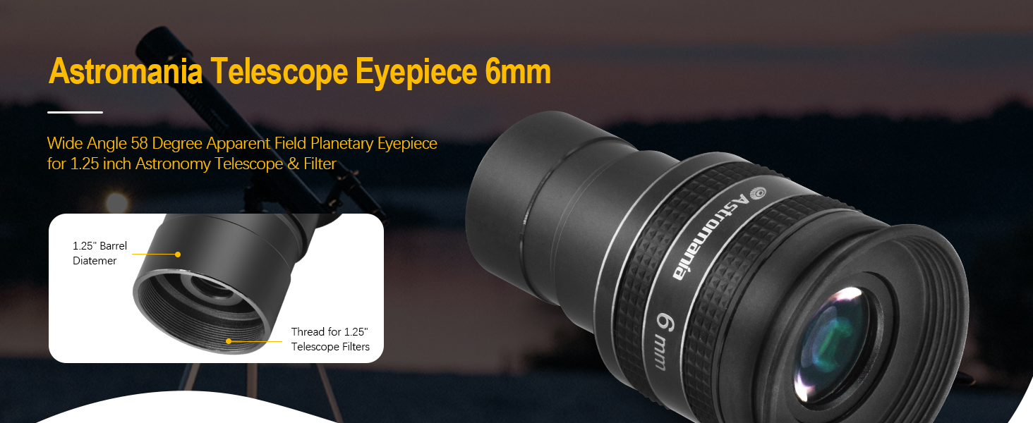 Astromania Telescope Eyepiece 6mm, Wide Angle 58 Degree Apparent Field Planetary Eyepiece for 1.25 inch Astronomy Telescope & Filter, Fully Multi-Coated Telescope Accessory for Planetary Observation