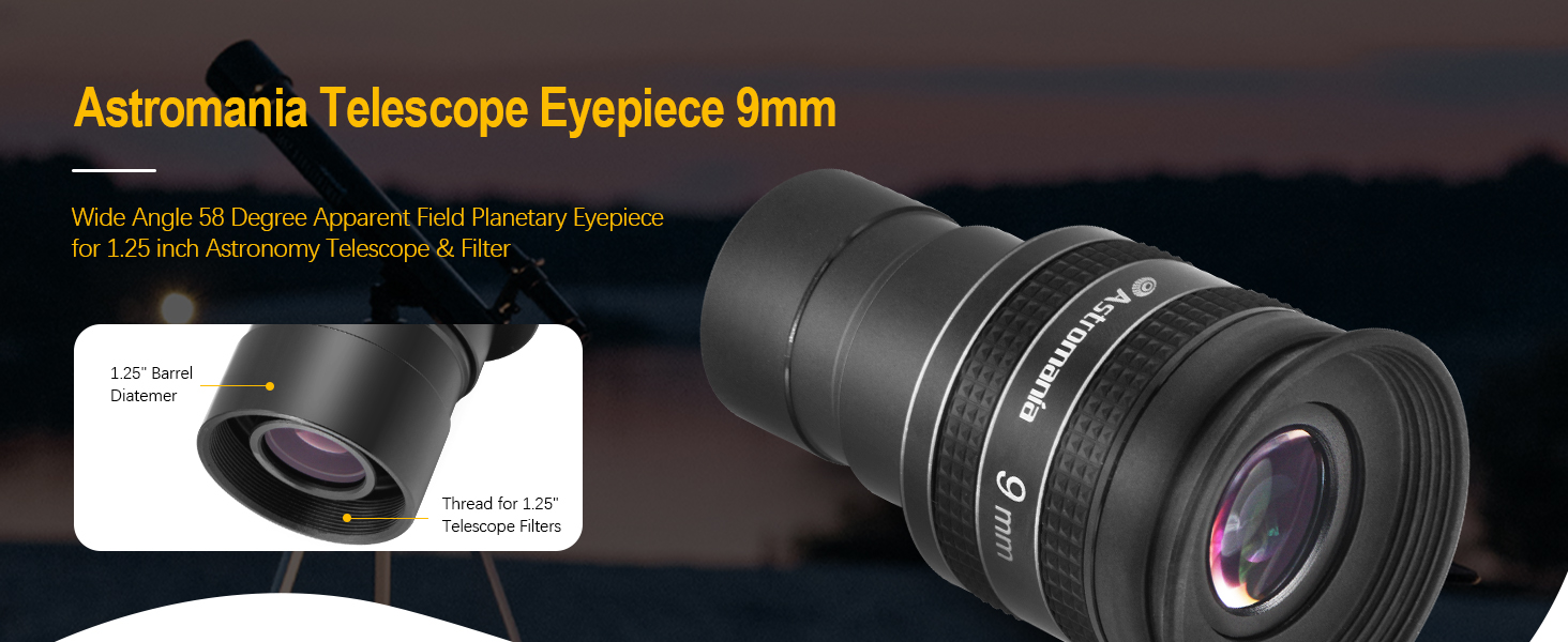 Astromania Telescope Eyepiece 9mm, Wide Angle 58 Degree Apparent Field Planetary Eyepiece for 1.25 inch Astronomy Telescope & Filter, Fully Multi-Coated Telescope Accessory for Planetary Observation