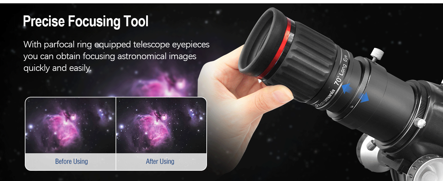 With parfocal ring equipped telescope eyepieces you can change magnifications quickly and easily.